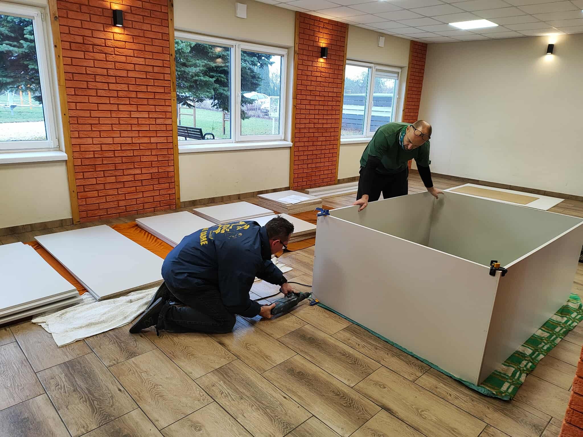 Informujemy, że w części kuchennej świetlicy wykonana została duża szafa - zabudowa całej wnęki. Projekt wykonał v-ce prezes Marcin Gąbka a montaż przeprowadzony został wraz z Michałem Chudzińskim. Pomieszczenie, w którym stoją lodówki, w tym momencie jest już docelowo wyremontowane oraz wyposażone, a do tak dużej zabudowy zmieści się wiele wyposażenia naszej kuchni. Dziękujemy za wykonane prace w pełni społecznie.